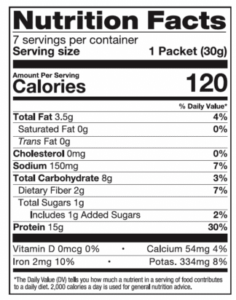 INGREDIENTS: Soy Protein Isolate, Soy Flour, Soy Protein Concentrate, Rice Flour, Sunflower Oil, Polydextrose, Cinnamon, Sucralose, Vanilla.