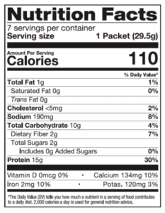 INGREDIENTS: Instant Oats, Soy Protein, Milk Protein Isolate, Dried Diced Apples, Baked Apple Flavor, Ground Cinnamon, Xanthan Powder, Sodium Bicarbonate, Salt, Citric Acid, Sucralose.
