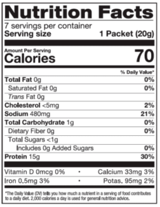 INGREDIENTS: Hydrolyzed Gelatin, Natural Flavors, Powdered Chicken Broth, Fructose, Salt, Yeast Extract, Potassium Citrate, Whey Protein Concentrate, Turmeric, Parsley, Chicken Bouillon, l+G, Vegetable Broth (Tomato Powder, Garlic Powder, Onion Powder), Spices, Sunflower Oil, Soy Lecithin.